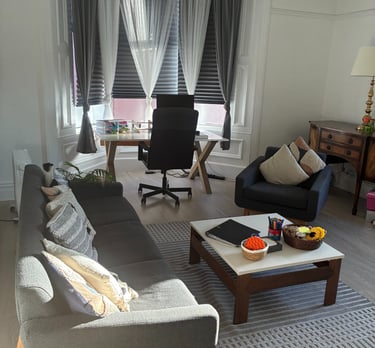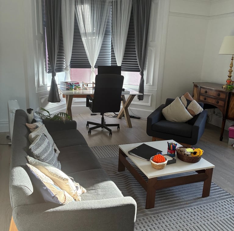 1:1 sessions can be booked in the lovely calm therapy rooms at Calm together Scruton House, Newbottle Street, Houghton le Spring, Tyne and Wear, DH4 4AD